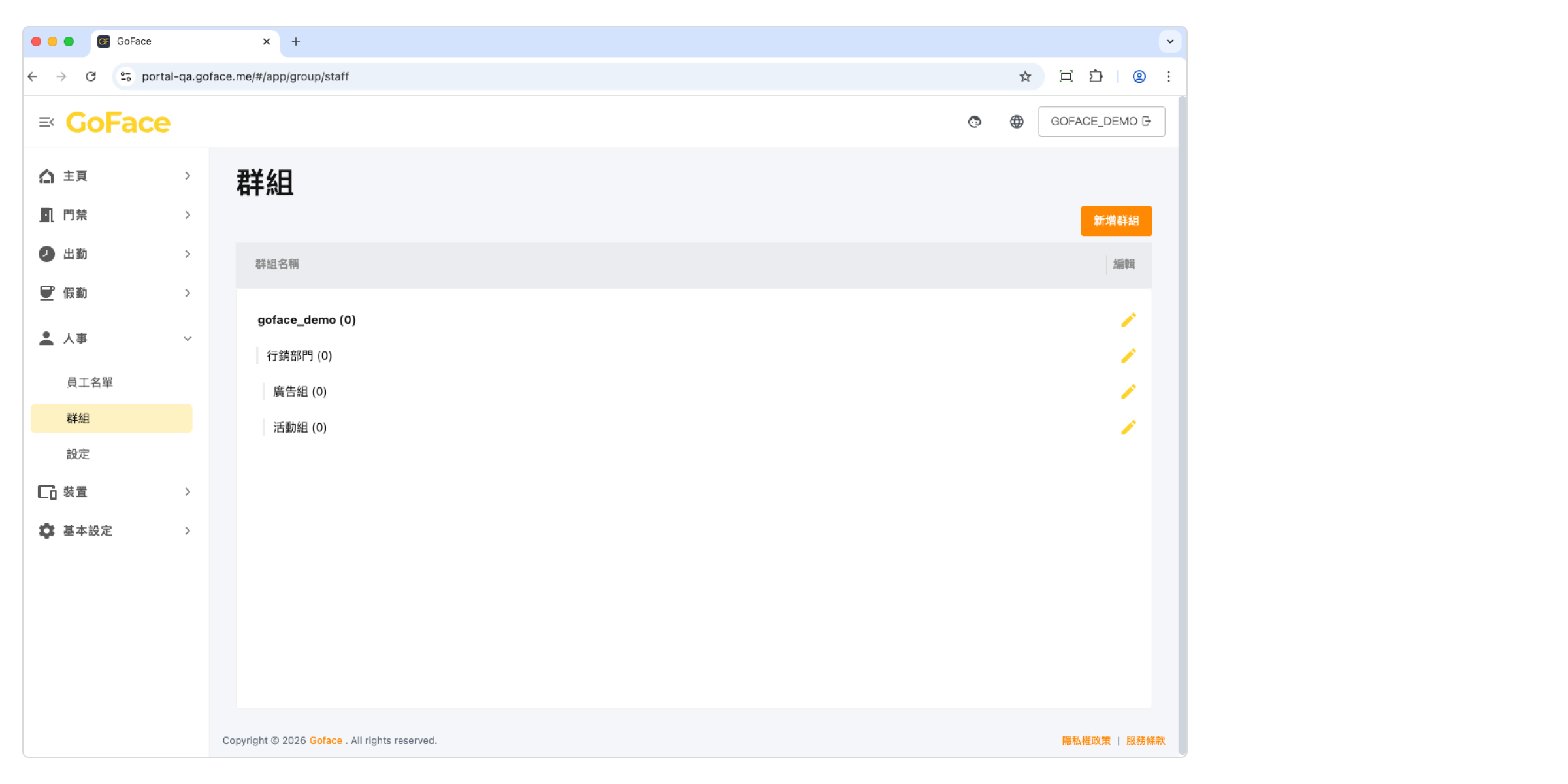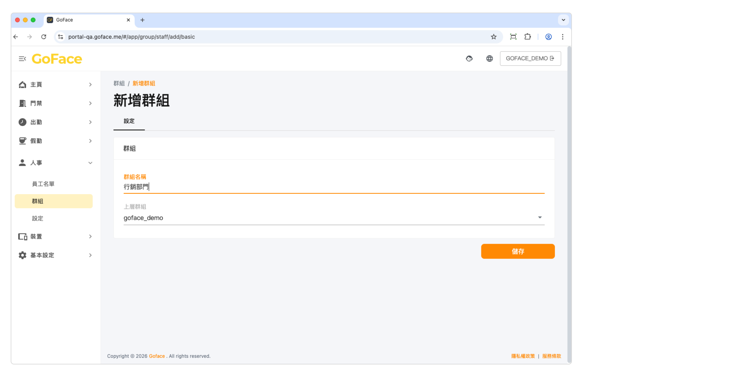 透過 [ 人事 > 群組 ] ,來建立公司架構與部門關係