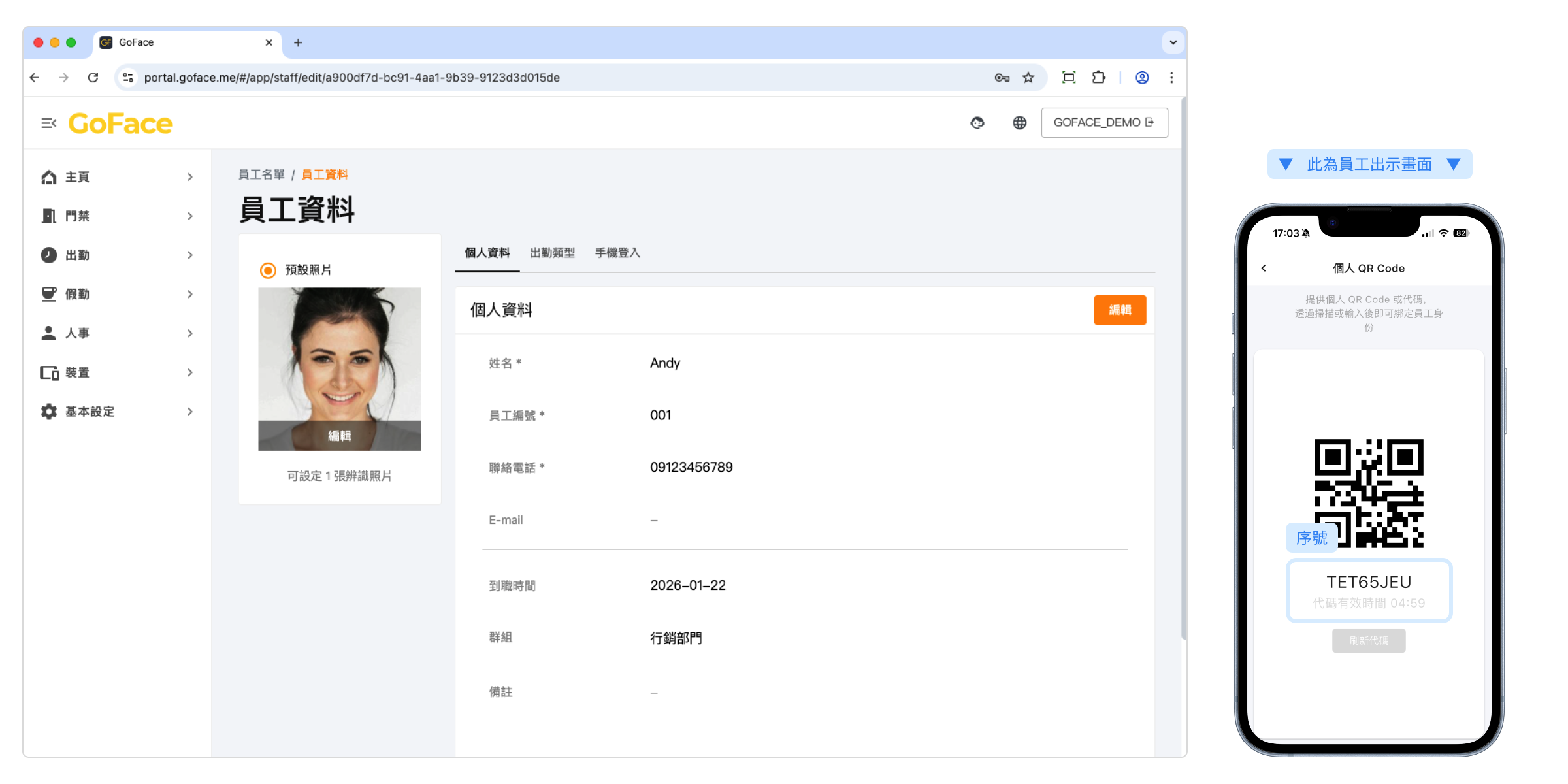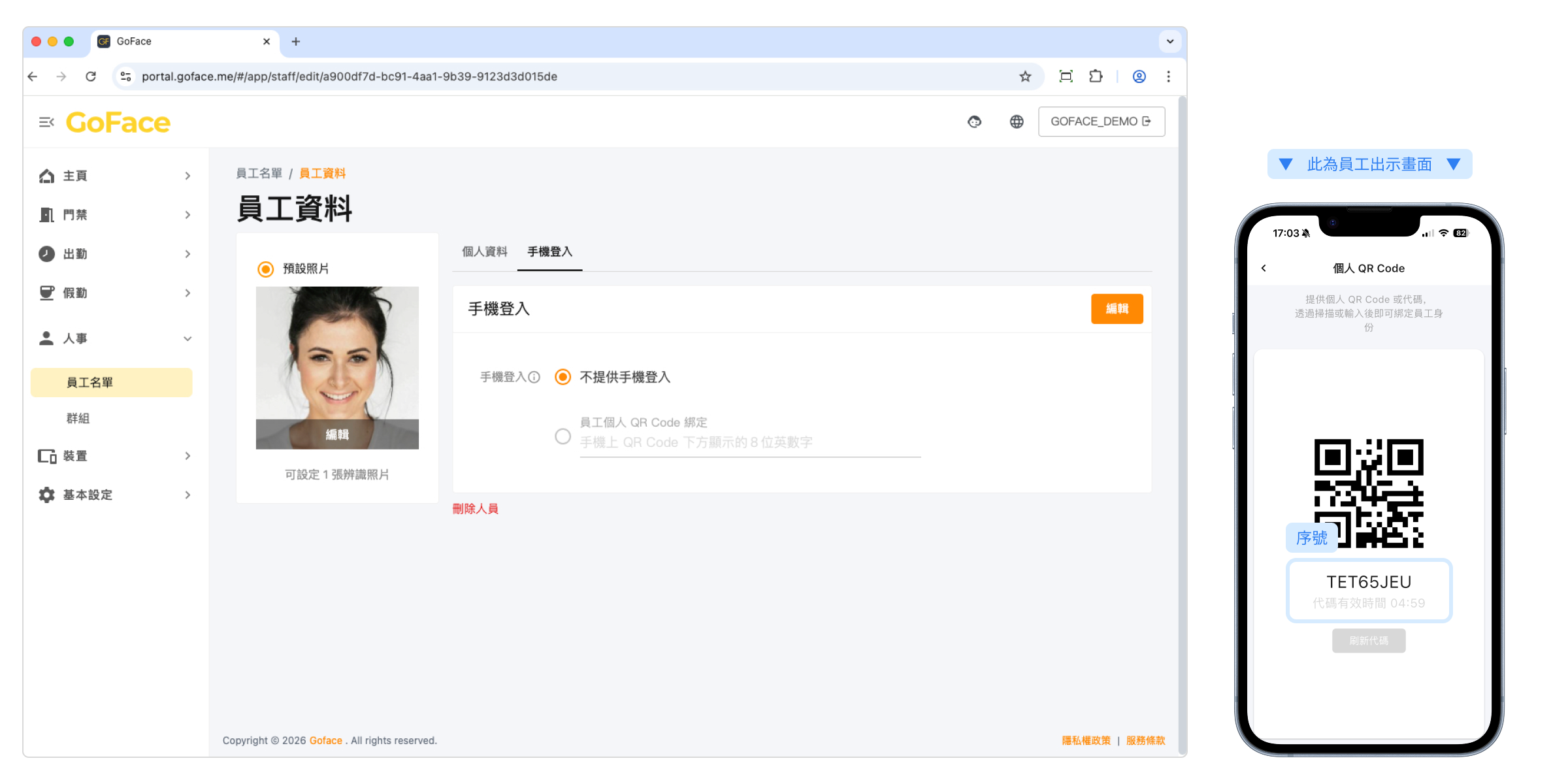 完成建立後,可切換頁籤開啟員工的手機登入功能